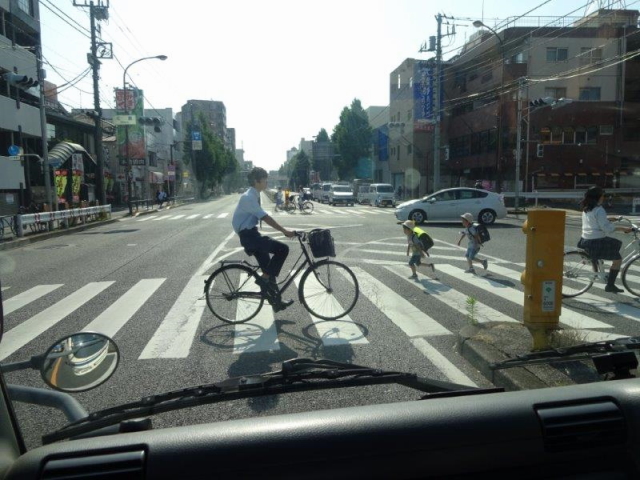 横断歩道での安全確認。
