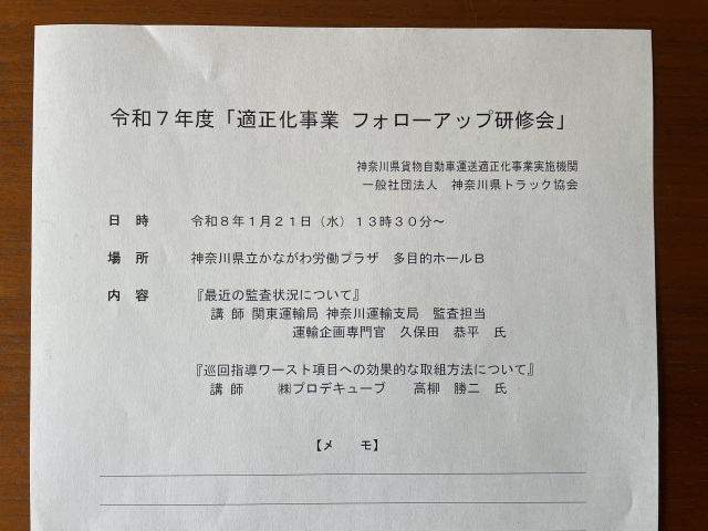 神奈川県トラック協会様のフォローアップ研修会(横浜会場)で講師を担当しました